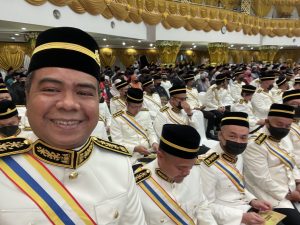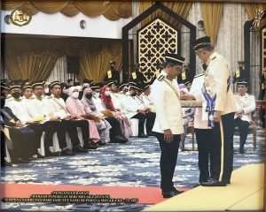 The majestic hall of Balai Istiadat was adorned with royal decor, reflecting the solemnity and grace of the occasion. YBhg Datuk Sr Firdaus Musa received his insignia from TYT Tun Seri Setia (Dr.) Haji Mohd Ali bin Mohd Rustam, witnessed by Toh Puan Datuk Wira Asmah Abd Rahman, in a ceremony filled with tradition, pride, and dignity.